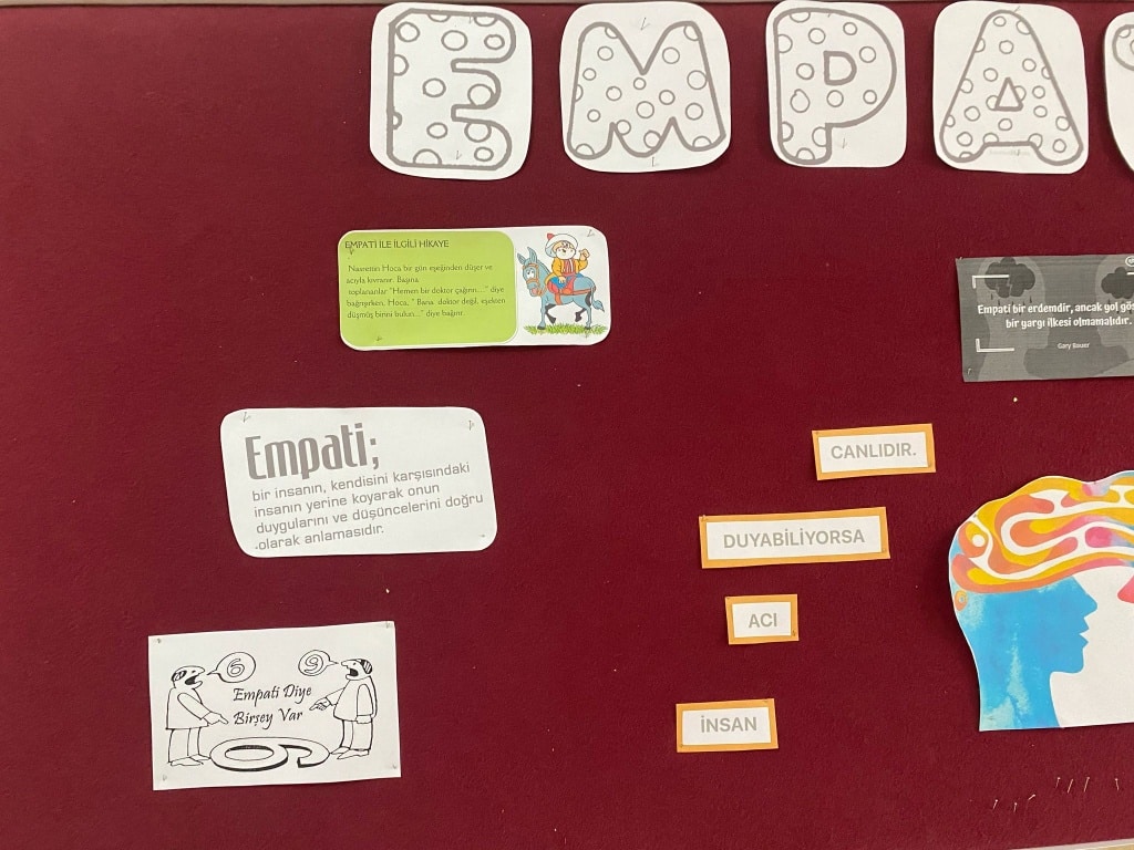 Okul ve sınıf rehberlik planlarımızda yer alan şubat ayı değeri empati için pano çalışması yapıldı. Ay boyunca ilgili değerlere sınıf içi etkinliklerde yer verilecektir.